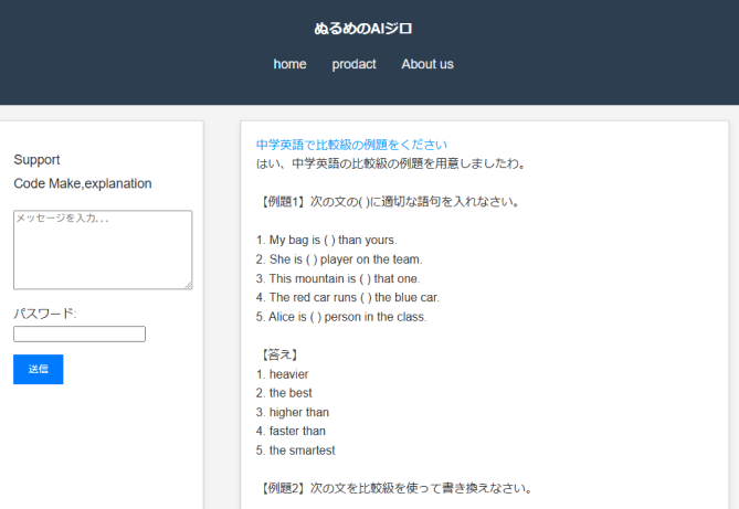 いままで、CHAT GPTを利用し、プログラムコードや、1日1問の問題を取得しておりましたが、WEBサイト上で取得できるように、サイトの作成を行いました。